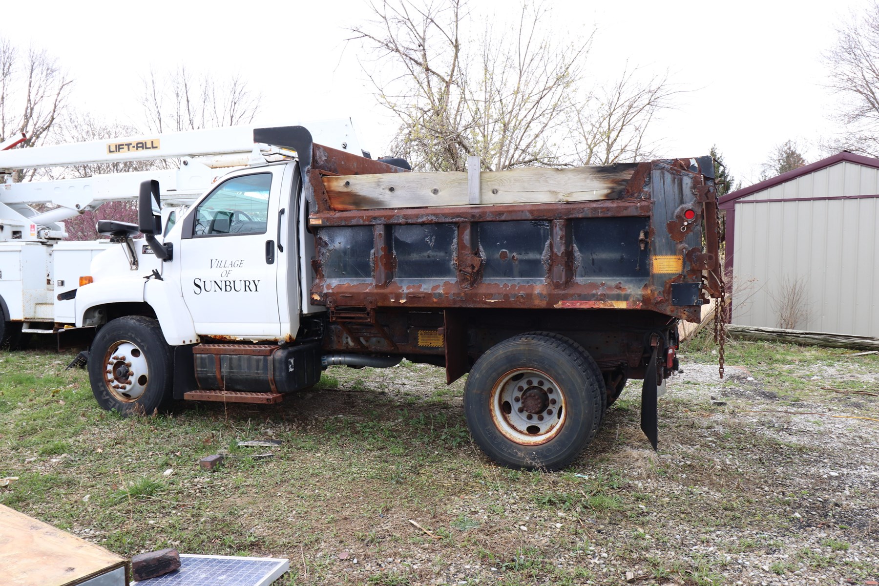 2004 Dump truck –Chevy C7500, single axle, heavy rust/salt damage, no plow or salter, Not currently running / needs fuel lines / possible ECM issue / will need to be hauled or towed.