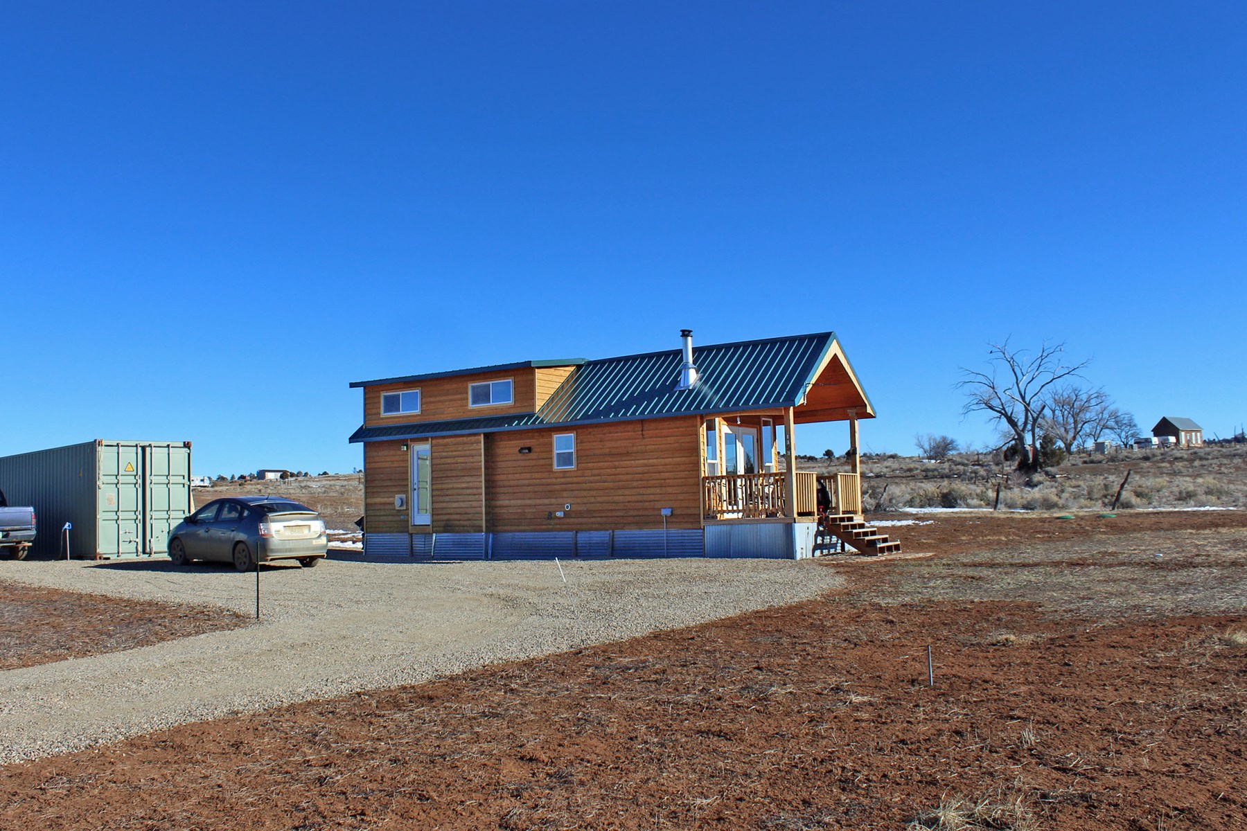 Awesome views of Mesa Verde, the La Platas, and Sleeping Ute Mountain from this comfortable, well-maintained tiny home. The living area offers many windows to let the beautiful light in, and has plenty of room for a TV and couch. The 200 sq ft loft is in addition to the 400 square foot main level and makes an excellent 2nd bedroom. Stay nice and cozy when it's cold with both wood heat and built in propane heat. Home is thoughtfully designed and custom built by Rich's Portable Cabins, of La Grande, Oregon. Sale includes 40' storage container which offers great locked storage for bikes, tools, etc. Great central location only 15 minutes to Cortez, Dolores or Mancos.