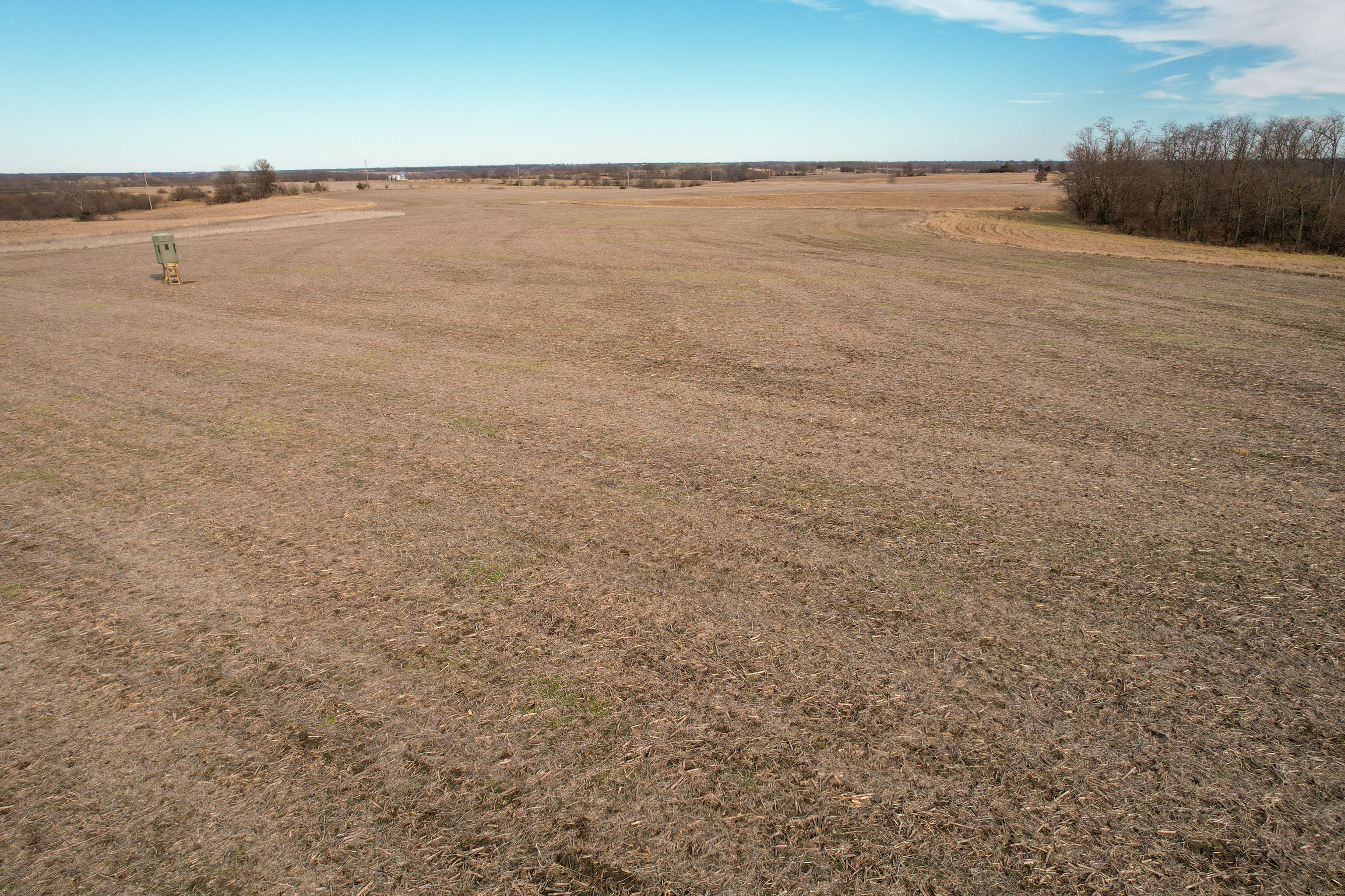 Beyond the income component, the remainder of the property consists of timber, draws, and natural drainage that create strong wildlife movement and bedding structure. Established CRP adds long-term cover, and the pond provides both recreational value and a consistent water source. The farm has gravel road frontage with two access points, offering flexibility for entry and setup.