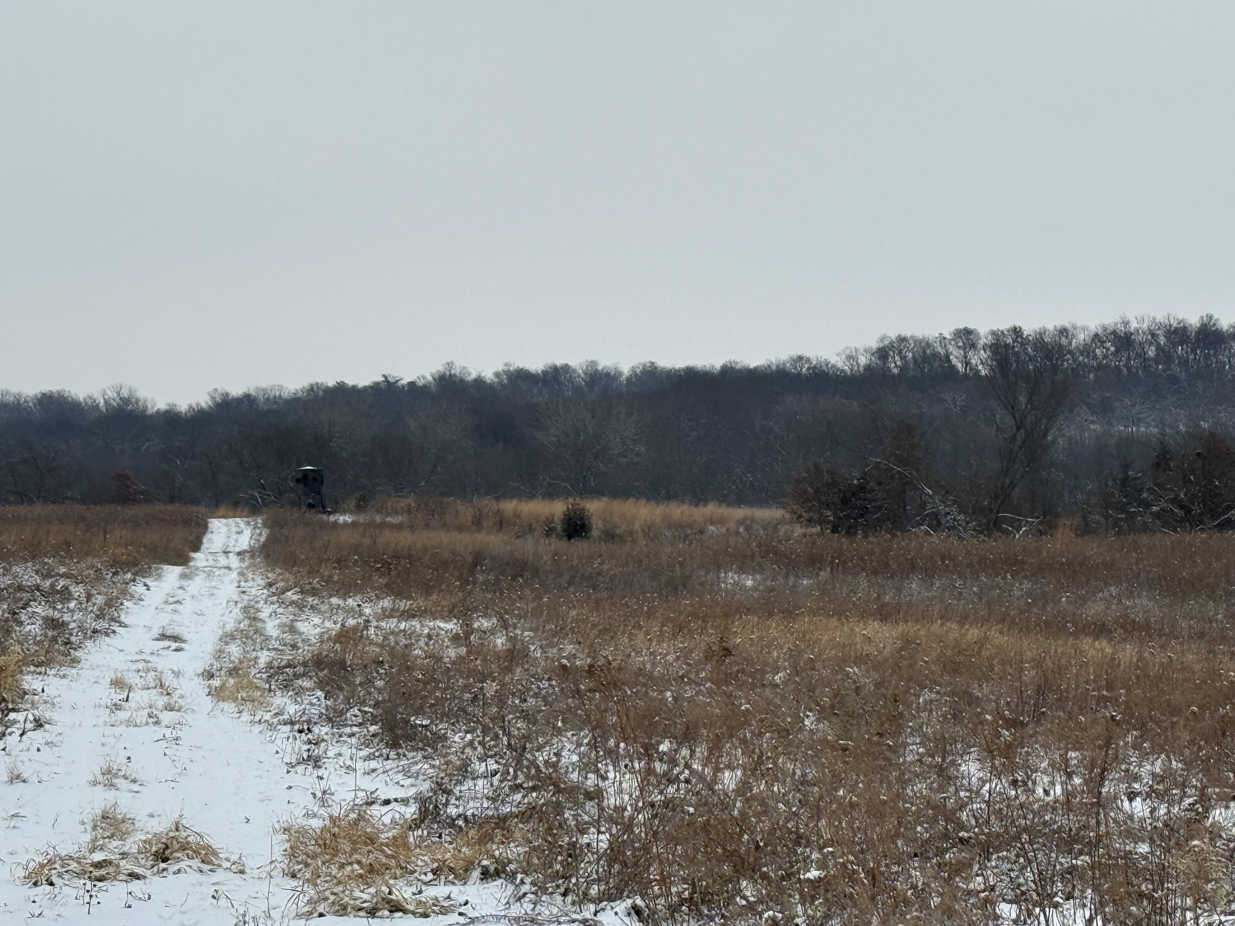 The property features classic southern Iowa terrain with creek-bottom timber filled with mature walnut and cottonwood, transitioning into ridges dominated by oak and hickory. Open acres are enrolled in native warm-season grasses, complemented by brushy fence lines and established food plot areas. South-facing slopes and overgrown pasture create dense bedding cover, resulting in a highly effective layout for producing and holding mature whitetails. The farm also supports strong populations of turkey, pheasant, and quail.