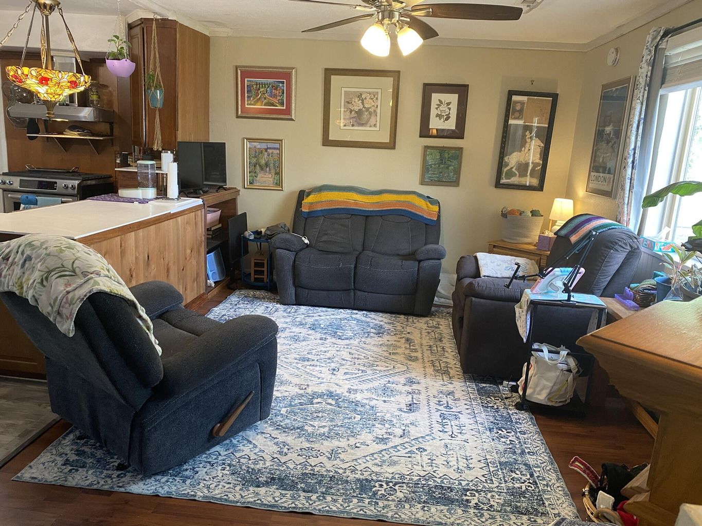 The kitchen is both practical and inviting, featuring newer appliances, plenty of storage, and durable finishes. The open floor plan connects easily to the living area, creating a bright and comfortable space for relaxing or entertaining.