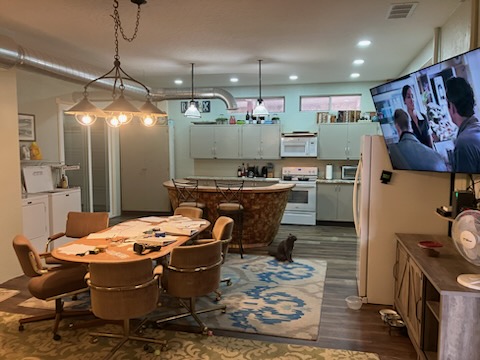 Apartment: 900 sqft Apartment 2 bdr/1 bth on second floor/big kitchen/ Electric stove, side by side refrigerator, washer/dryer, Dishwasher, negotiable on contents/ huge walk in shower 36'x5'/ 6' ceilings to the roof/8' doors/ overlooking view/ granite/ large closet/2 bedroom 1 bath, (1 bedroom multipurpose) could add a breakfast nook, could make 3 small efficiency apartments, expandable/ 24 new windows