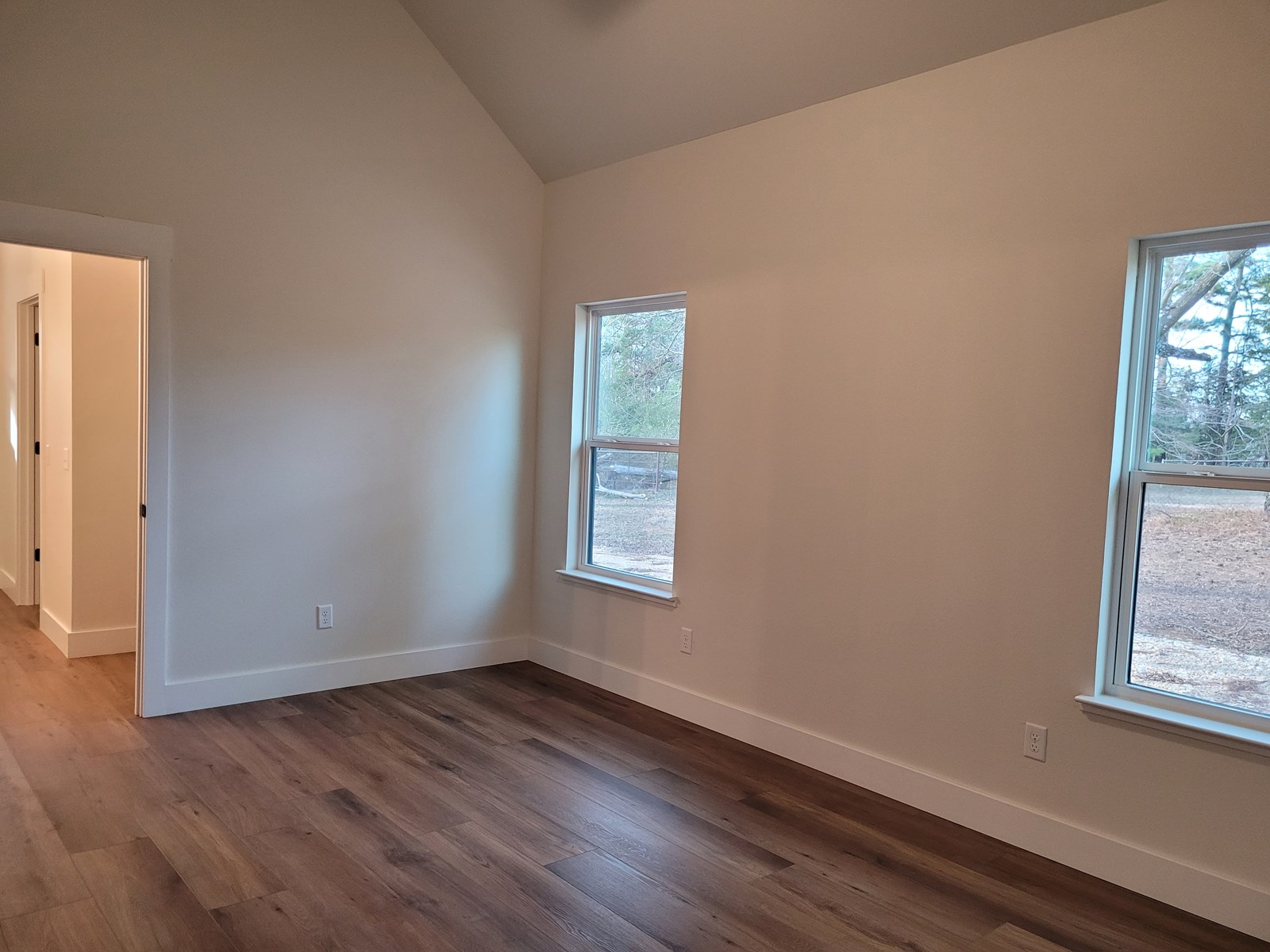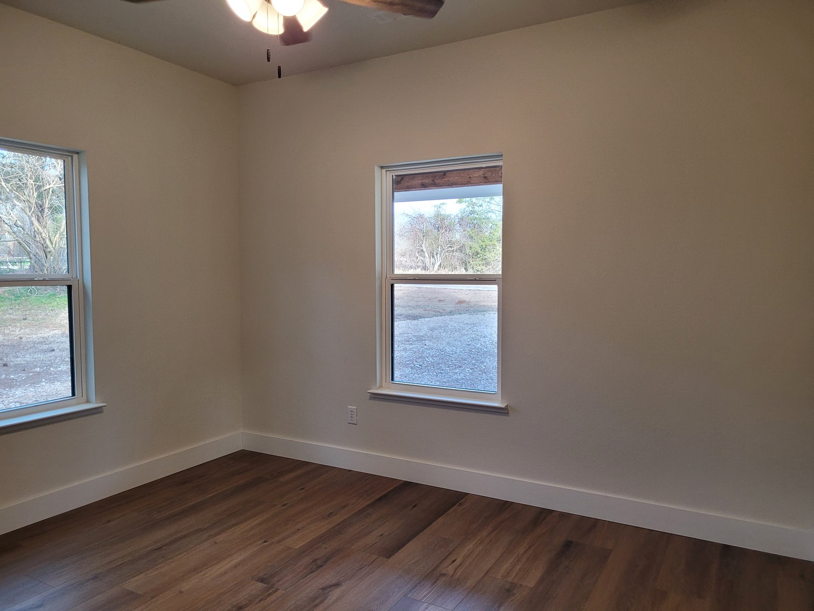 Beautiful brand new home built in 2024 on 1.264 acres in the country community of Woodland TX. The home offers high ceilings and an open floor plan. Utility room is off of kitchen and is plenty large enough to add a freezer. Off the living area is the hall to the two bedrooms and bathroom. To your left is the primary bedroom with ensuite bath and large walk in closet, vanity with dual sinks, large shower and linen storage cabinet. To the right is the second bedroom with nice size closet with windows offering plenty of natural light. The hall bath is between the two bedrooms and easy access from second bedroom or living area. There is linen storage, a tub with shower, and a vanity with a single sink. Sit on your back porch and enjoy the outdoors and watch the sunrise and sunsets. Outside, on the east side of the house, is a nice side yard and gravel drive for parking. There is also a circle drive in front of the home. The backyard and west side yard are very large, has a few trees, and backs up to a small wet weather creek that attracts mother nature such as birds, rabbits, and other small animals. The home is about 26 minutes from Paris, 10 minutes from Detroit, 30 miles from Idabel, OK, 43 miles from Broken Bow, OK, and 29 miles from Grant, OK. Looking to downsize? Retire to the country and enjoy this beautiful brand NEW home, ready to move in!! Come take a look!